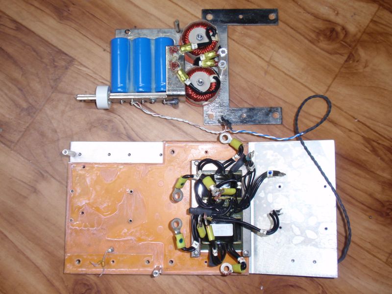 Každá tlumivka je vinuta dvěma lakovanými měděnými dráty 1,7mm. Celkový průřez vodičů je tedy cca 9mm2.
