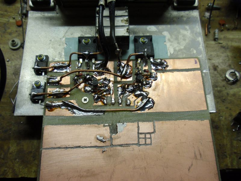 Tranzistory T5 a T6, diody D5, D5', D6, D6', D7, D7', a můstek je nutno umístit na chladič.