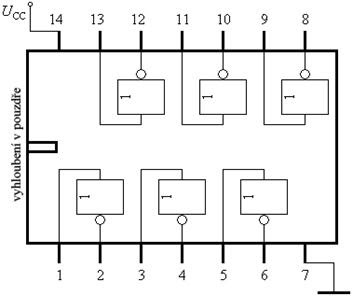 P.S.: Využívám obvodu 74HC04 (zde i pinout na fotce č. 1), avšak lze využít jakýkoliv obvod s NOT hradly.