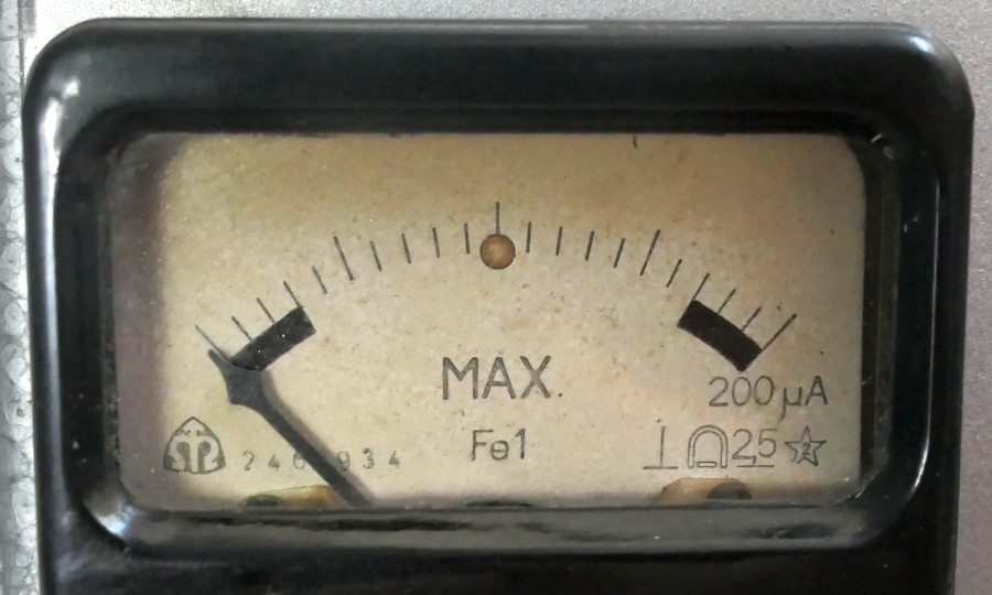 Při konečném doladění oscilátoru do rezonance je potřeba, aby nula indikátoru byla uprostřed stupnice v okolí červené tečky s nápisem "max".