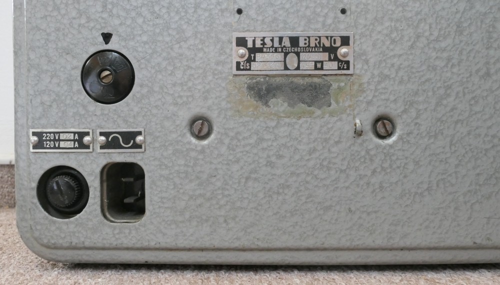 Tesla BM366 - šasi zespodu - detail oblasti u měřících zdířek.