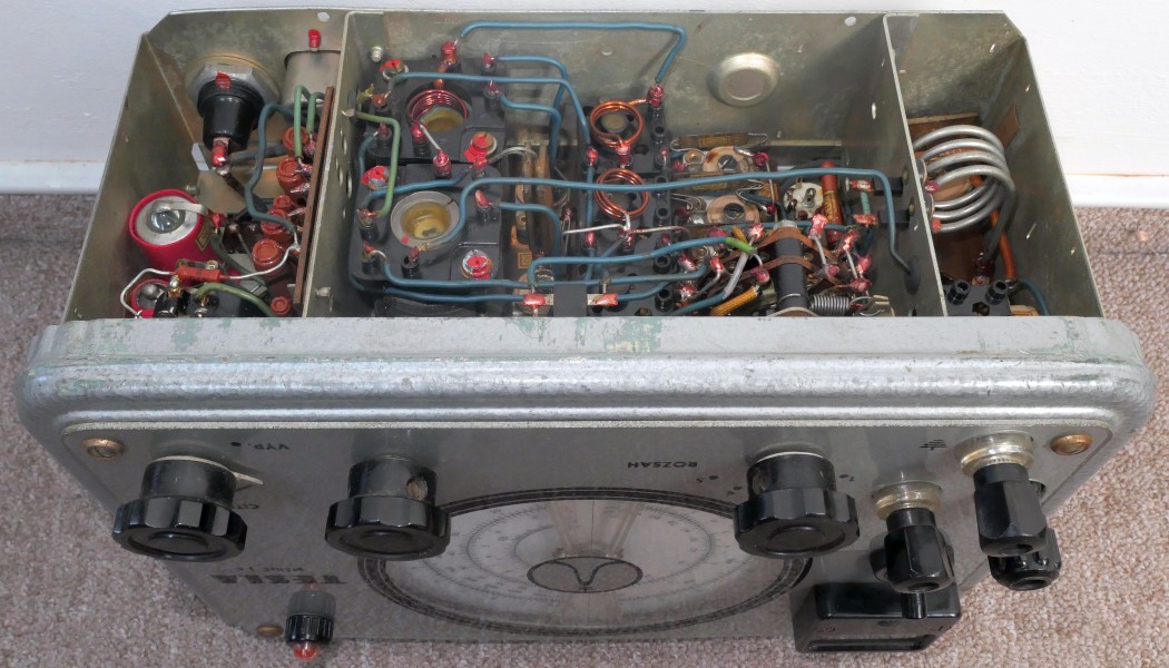 Tesla BM366 - šasi ze strany elektronek a ručkového měřidla.