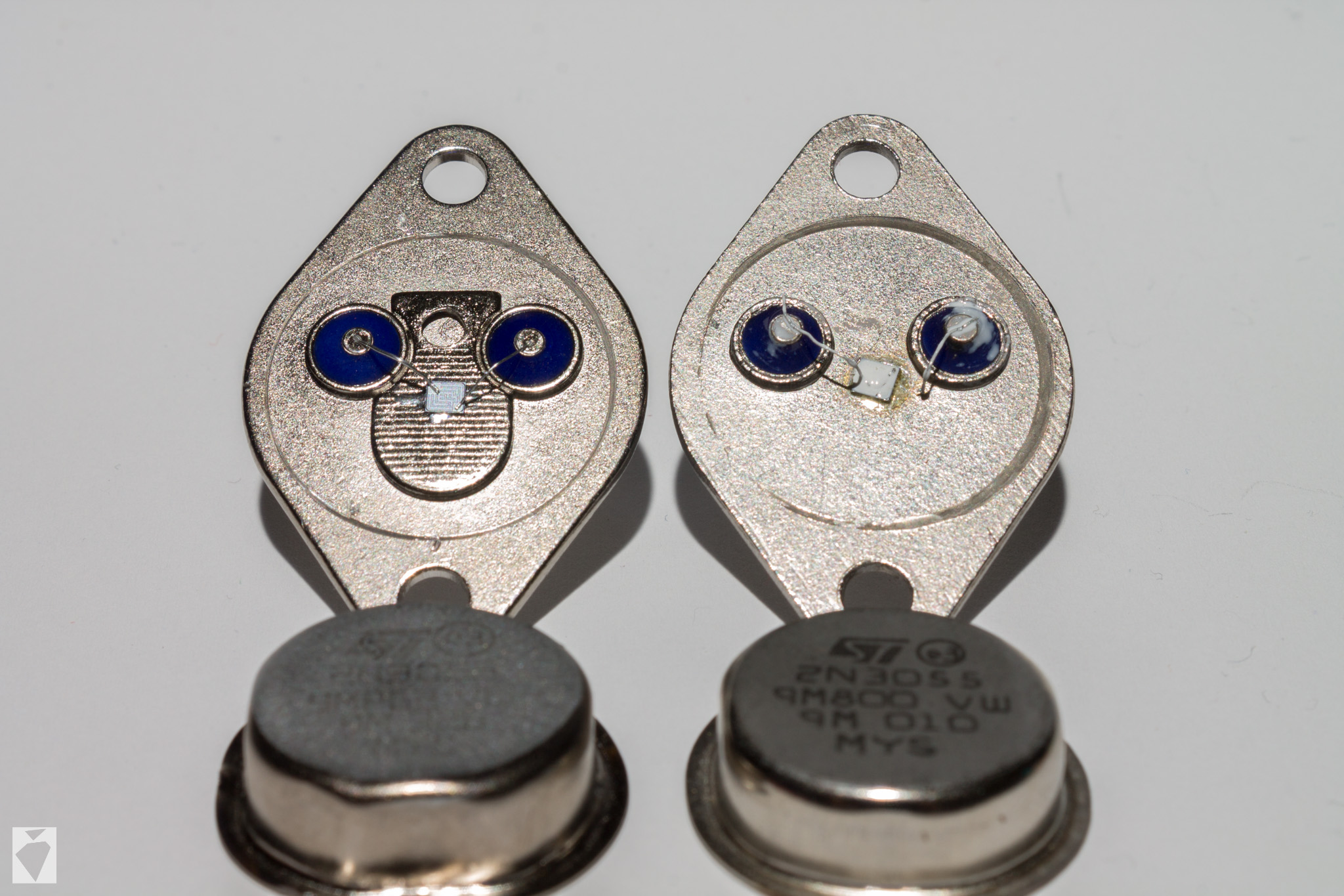 2N3055 je nejvíc pajcovanej trand. Ale tady bych se nedivil, kdyby to byl opravdu originál od ST, oni maj ty čipy fakt hodně malý (proud sepnou třeba stejnej, ale SOA i Ptot je menší, možná bys to našel i v datáku)... Ale ten 2955 už je dost podezřelej.